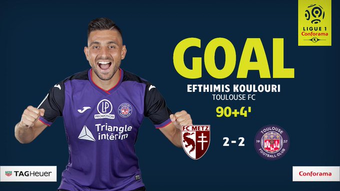 Μια ανάσα από την ήττα βρέθηκε η Τουλούζ εκτός έδρας κόντρα στη Μετς, ωστόσο ο… από μηχανής θεός που ακούει στο όνομα Ευθύμης Κουλούρης με γκολ που σημείωσε στο 96′ έσωσε τον βαθμό με φανταστικό σουτ για την ομάδα του (2-2).