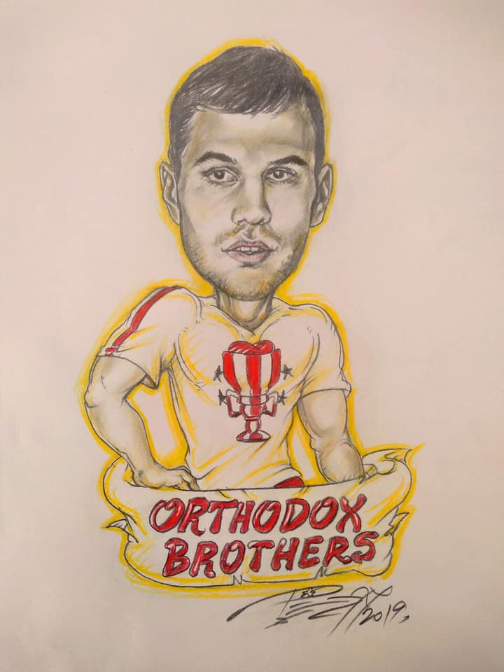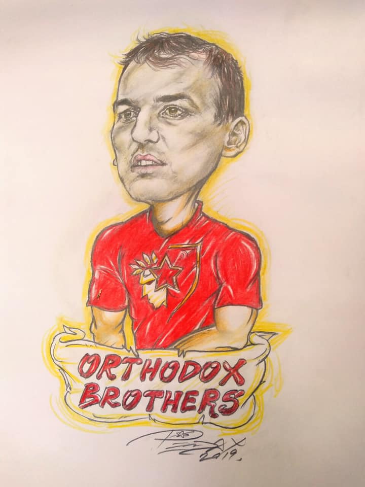 Με τη λεζάντα «ορθόδοξα αδέρφια», ο Ερυθρός Αστέρας παρουσίασε σε μορφή σκίτσου αρκετούς από τους παίκτες που έχουν φορέσει τα ερυθρόλευκα τόσο της ομάδας του Βελιγραδίου όσο και του Πειραιά.