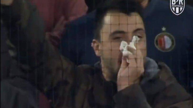 Ο Ολλανδός πάντως ουδόλως πτοήθηκε και, παρά το ατύχημα, συνέχισε να τραγουδά συνθήματα για την αγαπημένη του ομάδα!