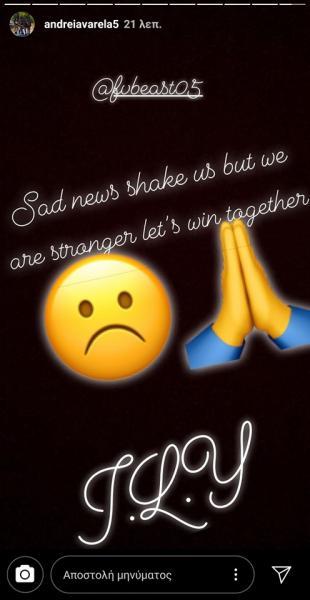 Από την ανάρτηση, πάνως, της συζύγου του Βαρέλα, Αντρέια, τα πράγματα φαίνονται άσχημα. «Άσχημα νέα μας ταρακούνησαν, αλλά είμαστε δυνατοί. Ας κερδίσουμε μαζί», έγραψε μετά το ματς με τους Αρκάδες.