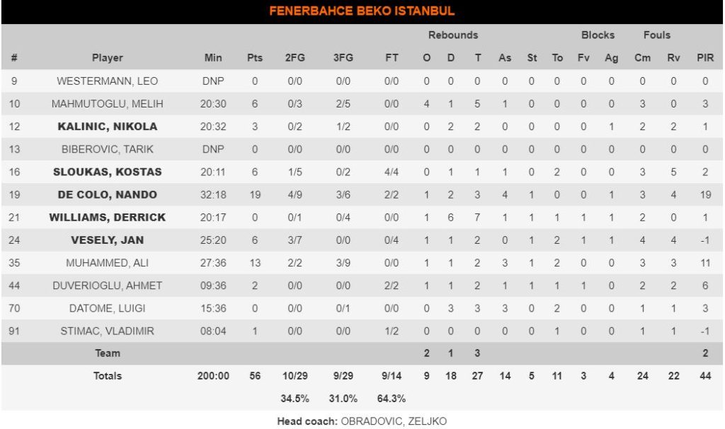 Οι Σέρβοι με εκπληκτική εμφάνιση… έπνιξαν την προβληματική Φενέρ (68/56) πανηγυρίζοντας έτσι μια μεγάλη πρώτη νίκη στη φετινή διοργάνωση, ενώ η ομάδα του Ζέλικο Ομπράντοβιτς δέχθηκε δεύτερη σερί σφαλιάρα (εκτός έδρας) με τον Ντε Κολό (19 πόντοι) να είναι ο μοναδικός διασωθείς από το… ναυάγιο.