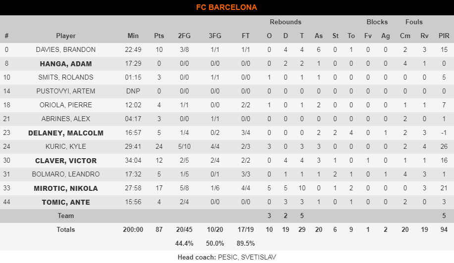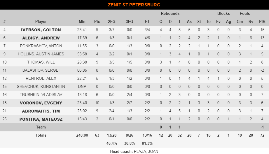 Η Μπαρτσελόνα έφτυσε αίμα για τρία δεκάλεπτα στην Αγία Πετρούπολη, μέχρι να καταφέρει να επιβάλλει την ανωτερότητά της. Οι Καταλανοί μπήκαν στην τελευταία περίοδο με +3 και στο τέλος της η διαφορά είχε φτάσει στο +24. Οι Ρώσοι κατέρρευσαν στο τελευταίο δεκάλεπτο με το επιμέρους 28-7 εναντίον τους να αποτυπώνει πλήρως την κατάσταση. Η ομάδα του Πέσιτς βασίστηκε στον εκπληκτικό Κούρικ που σκόραρε 24 πόντους με 3/3 τρίποντα και στον Μίροτιτς που παρότι τα έσπασε έξω από τα 6,75, έδωσε πολλές διαστάσεις στο παιχνίδι της Μπαρτσελόνα με 17π. και 10 ριμπάουντ.