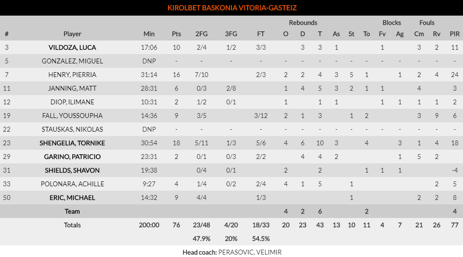 Δεν αμφισβήτησε ποτέ κανείς την παικτική αξία του Γιάνις Τίμα. Γι’ αυτό και ήταν τρομερά μεγάλη η απογοήτευση των ανθρώπων του Ολυμπιακού πέρυσι, όταν διαπίστωσαν πως (για εξωαγωνιστικούς λόγους) ήταν αδύνατη η πλήρης προσαρμογή του στην ομάδα. Ο Λετονός ήταν ο άνθρωπος του αγώνα για τη Χίμκι, σκοράροντας 18 πόντους με εξαιρετικά ποσοστά και προσφέροντας λύσεις σχεδόν σε κάθε κομμάτι. Μαζί με τους Σβεντ, Έβανς και Μπούκερ, δημιουργήθηκε μια τετράδα ικανή να τα βάλει και με τους δέκα παίκτες που αγωνίστηκαν απόψε για την Μπασκόνια…