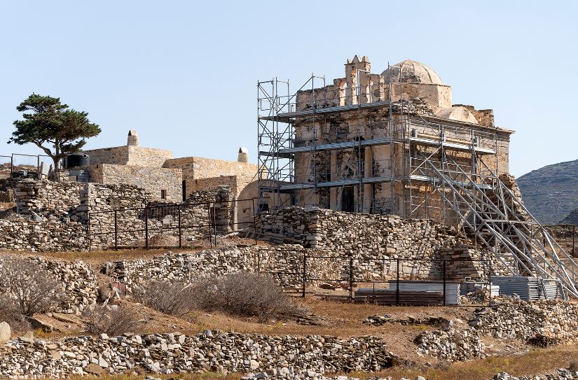 «Το Υπουργείο Πολιτισμού και Αθλητισμού δια μέσου της Εφορείας Αρχαιοτήτων Κυκλάδων υλοποιεί το έργο της αποκατάστασης του ιδιαίτερου και πολύ σημαντικού μνημείου της Επισκοπής Σικίνου από το 2017, με πιστώσεις του επιχειρησιακού προγράμματος ΕΣΠΑ της Περιφέρειας Νοτίου Αιγαίου, προϋπολογισμού 750.000 ευρώ.