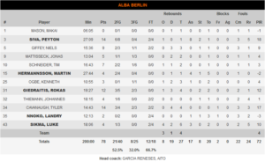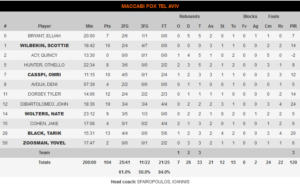 Το +15 έγινε +28 (83-55) στο τέλος της τρίτης περιόδου και έτσι το παιχνίδι πήρε μορφή διαδικαστικού χαρακτήρα στην τέταρτη περίοδο, όπου η «ομάδα του λαού» δεν δυσκολεύτηκε και πήρε το ροζ φύλλο αγώνα με 104-78. Με αυτήν τη νίκη η Μακάμπι ανέβηκε στο 5-2, ενώ η Άλμπα Βερολίνου υποχώρησε στο 1-6.
