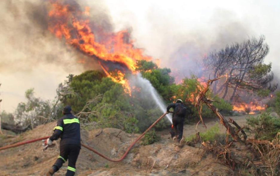 Η φωτιά καίει πευκοδάσος, ωστόσο δεν απειλείται κατοικημένη περιοχή. Το έργο των πυροσβεστών δυσχεραίνουν, ωστόσο, οι ισχυροί άνεμοι.