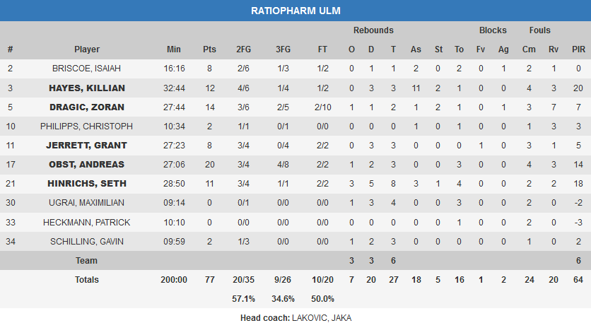 Με τον Ολεκσάνταρ Λίποβι (16 π) να είναι ο κινητήριος μοχλός επιθετικά, η ομάδα του Μάκη Γιατρά κατάφερε να οδηγηθεί στα αποδυτήρια, έχοντας το προβάδισμα δύο πόντων (42-40), αλλά στη συνέχεια η Ουλμ αντέδρασε.