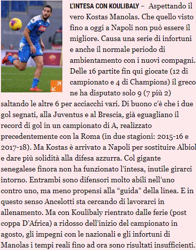 Συγκεκριμένα ο τίτλος των Ιταλών είναι: «Η Νάπολι περιμένει τον πραγματικό Μανωλά. Η συνεργασία με τον Κουλιμπαλί δεν λειτουργεί».