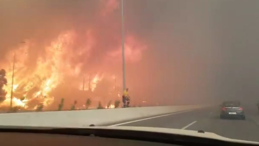 Όπως φαίνεται και στο βίντεο που ανέβασε στο Facebook ο χρήστης Γιάννης Λαμπρόπουλος, η φωτιά έχει φτάσει και περάσει την εθνική οδό, στην οποία επικρατεί μεγάλο μποτιλιάρισμα, ενώ γίνεται εκτροπή της κυκλοφορίας.