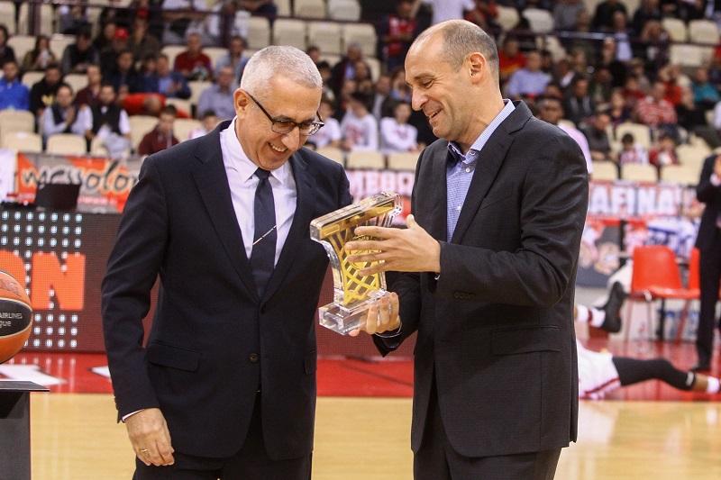 Έτσι, πριν από την έναρξη της αναμέτρησης, ο ένας εκ των προέδρων της ΚΑΕ Ολυμπιακός, ο Παναγιώτης Αγγελόπουλος, βρέθηκε στο κέντρο του παρκέ, για να βραβεύσει τον Χρήστο Σταυρόπουλο για την πολυετή παρουσία του και προσφορά του στον σύλλογο.