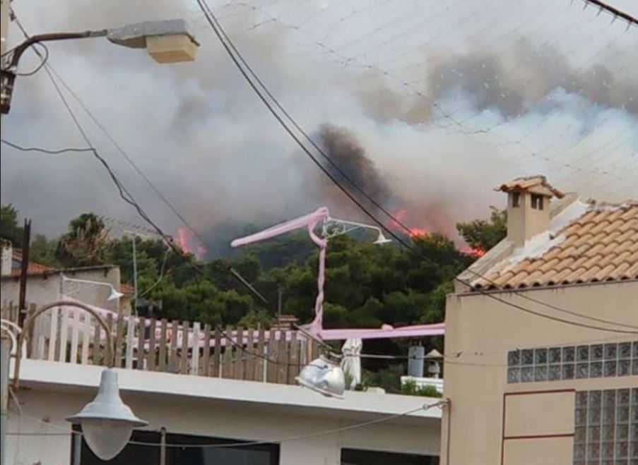 H φωτιά είναι σε κατοικημένη περιοχή • Πληροφορίες για δύο καμμένα σπίτια • Πανικόβλητος ο κόσμος κατεβαίνει προς την παραλία