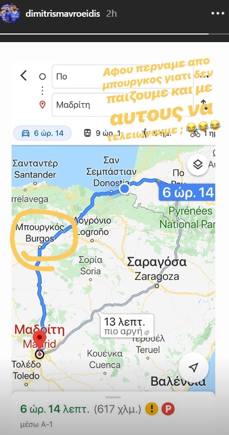 Έτσι λοιπόν κατά την επιστροφή της ομάδας μέσω… Μαδρίτης για να πάρει το αεροπλάνο επιστροφής στην Αθήνα, ο «κιτρινόμαυρος» σέντερ, ανέβασε το εξής στο Instagram: