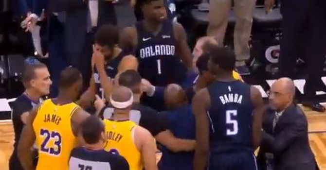 Scuffle breaks out between the Lakers & Magic 😬 pic.twitter.com/KH5PUA8BYH