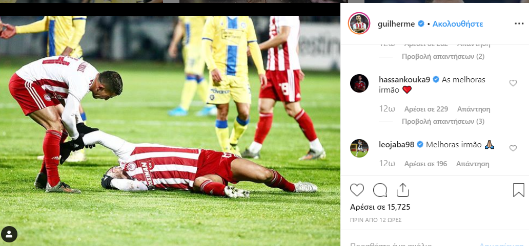Ο Γκιλιέρμε ευχαρίστησε μέσω social media τον κόσμο που του συμπαραστάθηκε μετά τον τραυματισμό του στον αγώνα με τον Αστέρα Τρίπολης και ο συμπατριώτης του στον ΠΑΟΚ, Λέο Ζαμπά, ήταν από εκείνους που έσπευσαν να του ευχηθούν γρήγορη ανάρρωση.