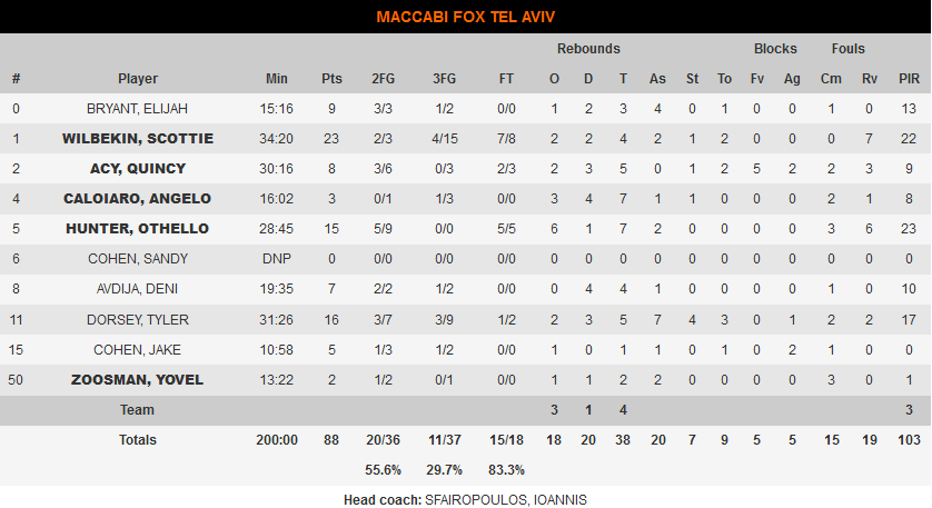 Στην τελευταία περίοδο οι δύο ομάδες ήταν εμφανώς κουρασμένες, αλλά τελικά η Μακάμπι ήταν αυτή που έδειξε τη μεγαλύτερη ψυχραιμία. Ο Σκότι Γουίλμπεκιν (23 π) πήρε το όπλο του και με βοηθούς τους Οθέλο Χάντερ (15 π, 7 ριμπ) και Τάιλερ Ντόρσεϊ (16 π) ολοκλήρωσαν τη μεγάλη ανατροπή της Μακάμπι.
