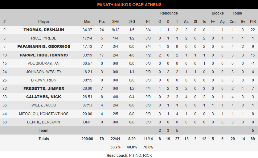 Η διαφορά ανέβηκε γρήγορα πολύ ψηλά και με τον ρυθμό να ανεβαίνει εξίσου σε υψηλό σημείο οι Πράσινοι δεν μπορούσαν να ακολουθήσουν τους γηπεδούχους. Έτσι, ο Γιάννης Σφαιρόπουλος πανηγύρισε μία ακόμα νίκη (88-79) επί του Παναθηναϊκού στη Euroleague και έφτασε ρεκόρ 5-1 κόντρα στους Πράσινους. Με τον Ολυμπιακό έχει 3-1 και με τη Μακάμπι 2-0.