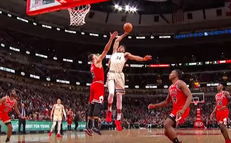 Συγκεκριμένα στη νίκη των Μπακς επί των Μπουλς στο Σικάγο, ο Greek Freak έκανε άλλο ένα εκπληκτικό κάρφωμα, «πετώντας» πάνω από τον Ζακ ΛαΒίν.