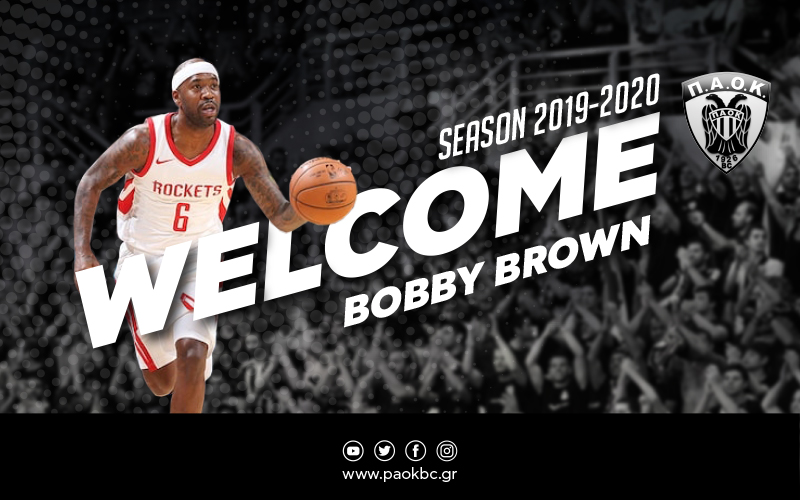 «Η ΚΑΕ ΠΑΟΚ ανακοινώνει την συμφωνία με τον Αμερικανό καλαθοσφαιριστή Bobby Brown μέχρι το τέλος της αγωνιστικής περιόδου 2019-20. Ο Bobby Brown αναμένεται το βράδυ της Παρασκευής στη Θεσσαλονίκη, προκειμένου να ενσωματωθεί άμεσα με την ομάδα του ΠΑΟΚ.