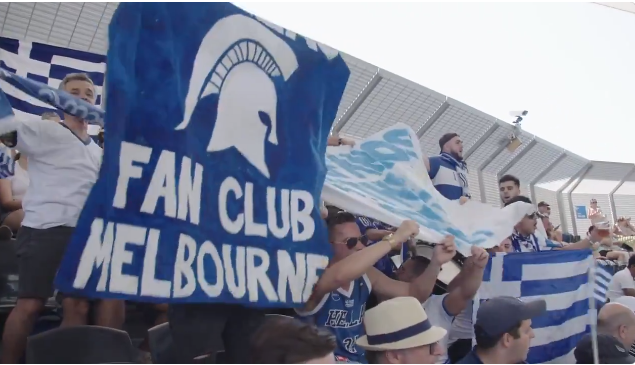 Ντυμένοι στα γαλανόλευκα, οι Έλληνες φίλαθλοι δημιούργησαν το πιο… φασαριόζικο μέρος της εξέδρας, τραγουδώντας… ποδοσφαιρικά συνθήματα συνοδεία τυμπάνου για χάρη του 21χρονου πρωταθλητή.
