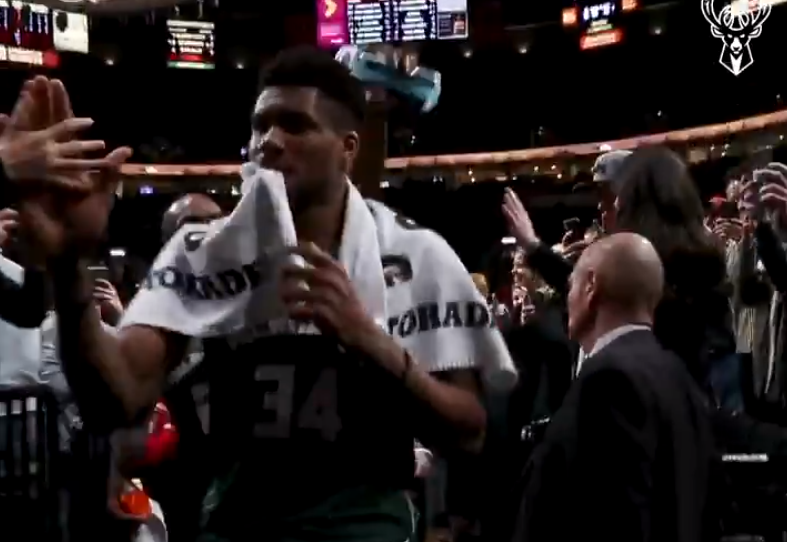 Στα τελευταία παιχνίδια του Μιλγουόκι, Μίντλετον και Μπλέντσο περιέλουσαν ο ένας τον άλλο με νερό και ενεργειακό ποτό, αυτή τη φορά, όμως, μετά το ματς με τους Μπλέιζερρς, ήταν η σειρά του Γιάννη Αντετοκούνμπο να… βραχεί.