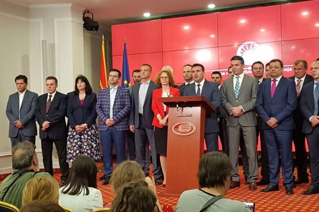 Περιστοιχισμένος από το υπουργικό του συμβούλιο ο πρωθυπουργός των Σκοπίων, Ζόραν Ζάεφ, πραγματοποίησε διάγγελμα για τη συμφωνία με την Αθήνα.