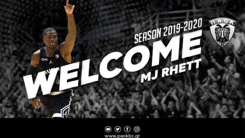 «Η ΚΑΕ ΠΑΟΚ ανακοινώνει τη συμφωνία της με τον Αμερικανό καλαθοσφαιριστή M.J. Rhett μέχρι το τέλος της αγωνιστικής περιόδου 2019-2020. Ο M.J. Rhett θα είναι στη Θεσσαλονίκη σήμερα (23/1) το μεσημέρι και θα ενσωματωθεί αμέσως με την ομάδα του ΠΑΟΚ.