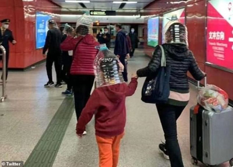 Τις τελευταίες ημέρες πολλοί άνθρωποι εθεάθησαν σε αεροδρόμια και μέσα μεταφοράς με πλαστικές μπουκάλες νερού στο κεφάλι, σε μια προσπάθεια να μείνουν μακριά από τον ιό, ο οποίος μεταδίδεται και σε απόσταση δύο μέτρων. Άλλοι τρόποι προστασίας ήταν οι μεγάλες πλαστικές σακούλες, που καλύπτουν μέρος του σώματος, τα κράνη, ακόμα και μπιτόνια!