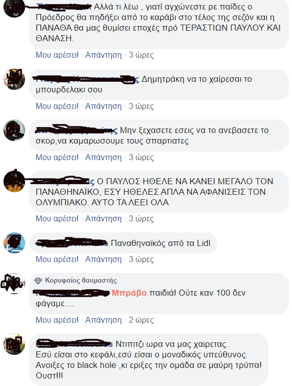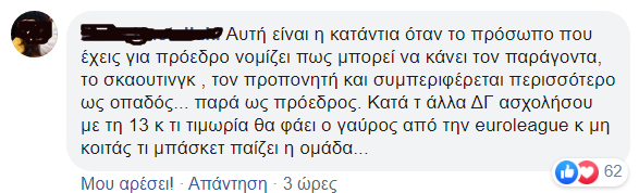 Μόλις δυο 24ωρα μετά την ήττα από τον ελλιπή Ολυμπιακό, ο Παναθηναϊκός διασύρθηκε από την ΤΣΣΚΑ στο ΟΑΚΑ σε ένα ματς που ήταν υποχρεωμένος να το διεκδικήσει ως το τέλος. Το συντριπτικό 66-97 συνιστά τη βαρύτερη ήττα του ΠΑΟ στη Euroleague και οι οπαδοί των Πρασίνων φρόντισαν να δείξουν την οργή τους στο facebook της ΚΑΕ ΠΑΟ. Πέρα από ευθύνες σε Ρικ Πιτίνο και παίκτες, ήταν πάρα πολλοί εκείνοι που επιτέθηκαν στον Δημήτρη Γιαννακόπουλο, ονοματίζοντάς τον ως τον βασικό υπαίτιο για την «καταστροφή του ΠΑΟ στο μπάσκετ»…