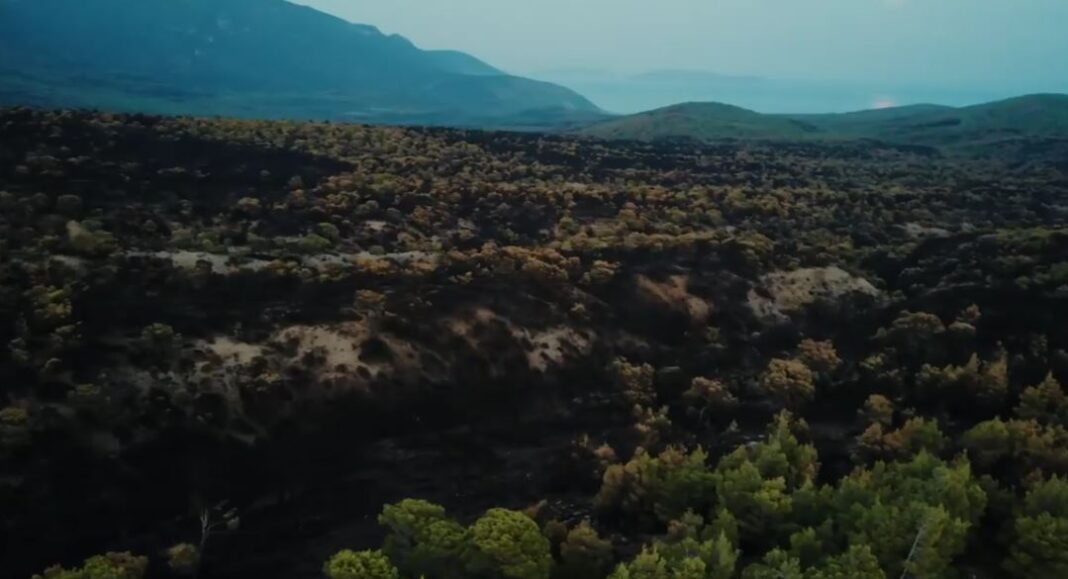 Θλίψη: Drone καταγράφει την τεράστια καταστροφή στα Γεράνεια Oρη από την πυρκαγιά (video)
