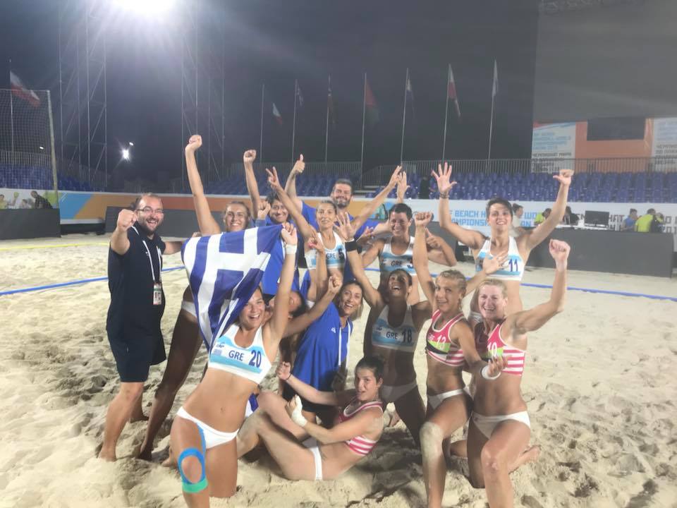 Με την ψυχή τους πανηγύρισαν οι παίκτριες της Εθνικής μπιτς χάντμπολ τη νίκη επί της Ισπανίας στο Καζάν, που τους έδωσε την πρόκριση στον τελικό του Παγκοσμίου Πρωταθλήματος για πρώτη φορά στην ιστορία της ομάδας.