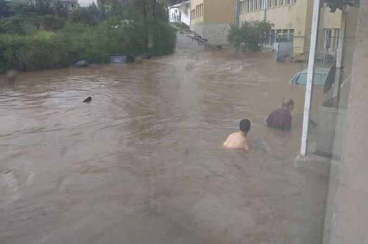 Η φωτογραφία, που δημοσιεύτηκε -συν τοις άλλοις- και στη σελίδα του Meteo, δείχνει τον πλημμυρισμένο δρόμο στον προαύλιο χώρο στο νοσοκομείο «Σωτηρία» και δύο πολίτες ουσιαστικά να κολυμπούν στο πλημμυρισμένο δρόμο, αφού τα νερά έχουν φτάσει μέχρι το στήθος τους.