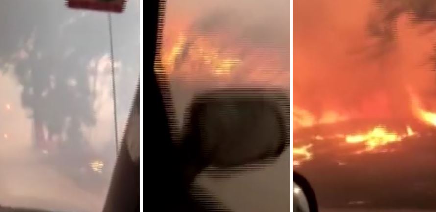 Οι δύο φίλοι πέρασαν μέσα από τις φλόγες για να γλιτώσουν, ενώ ο συνοδηγός βιντεοσκοπεί με το κινητό του, ψάχνοντας την ίδια στιγμή την γυναίκα και τα παιδιά του.