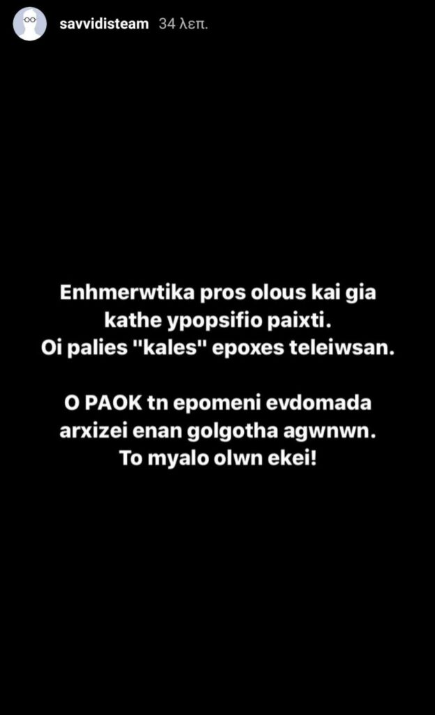 «Ενημερωτικά προς όλους και για κάθε υποψήφιο παίκτη. Οι παλιές “καλές” εποχές τελείωσαν. Ο ΠΑΟΚ την επόμενη εβδομάδα αρχίζει έναν Γολγοθά αγώνων. Το μυαλό όλων εκεί».