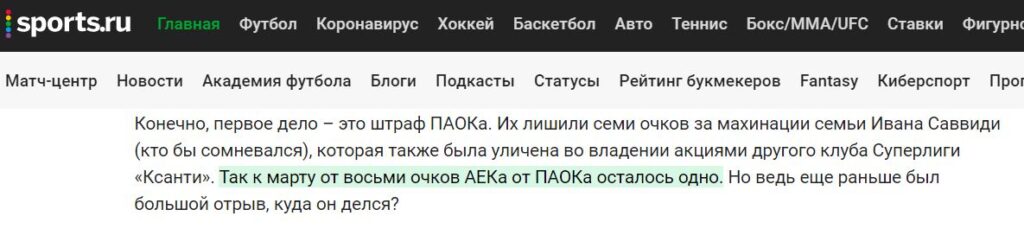 Μερικές ώρες αργότερα, η ρώσικη ιστοσελίδα sports.ru ετοίμασε αφιέρωμα στον προπονητή της ΑΕΚ και πρώην τεχνικό της Σπαρτάκ, Μάσιμο Καρέρα και επεφύλασε μια ξεχωριστή αναφορά στο σκάνδαλο πολυϊδιοκτησίας: «Στον ΠΑΟΚ αφαιρέθηκαν επτά βαθμοί για την απάτη της οικογένειας του Ιβάν Σαββίδη (που αμφισβητεί), ο οποίος καταδικάστηκε για κατοχή μετοχών σε άλλο σύλλογο της Σούπερ Λιγκ, την Ξάνθη».
