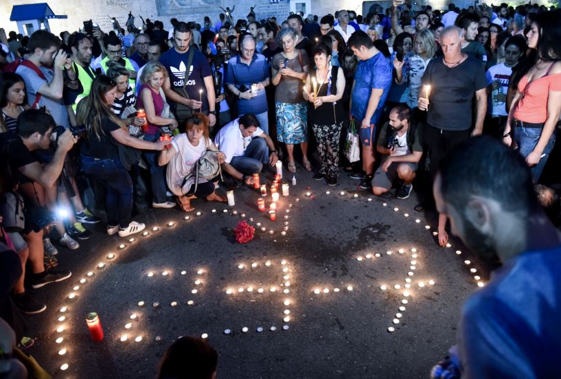 Καθισμένοι σε κύκλο εκατοντάδες πολίτες κρατώντας κεριά στα χέρια τους συγκεντρώθηκαν από τις 9 στην πλατεία Συντάγματος κοντά στο μνημείο του Αγνώστου Στρατιώτη, «τιμώντας σιωπηλά» τους νεκρούς από την πυρκαγιά της 23ης Ιουλίου.