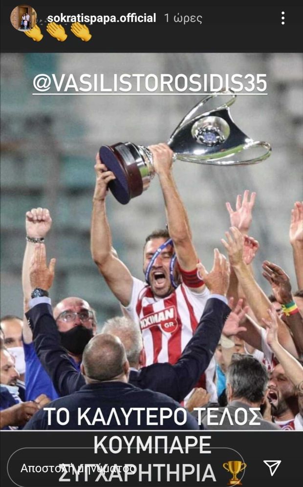 Ο Έλληνας κεντρικός αμυντικός ανέβασε μία φωτογραφία στο Instagram γράφοντας: «Το καλύτερο τέλος κουμπάρε, συγχαρητήρια».