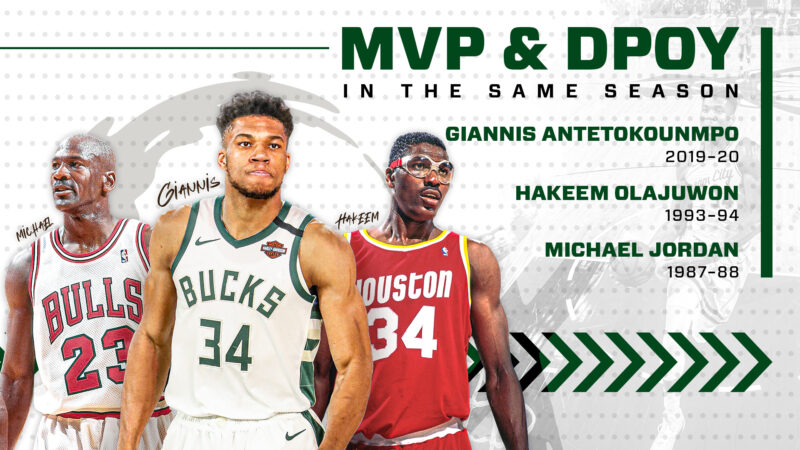 Giannis joins Michael Jordan and Hakeem Olajuwon as only players to win MVP & DPOY in the same season. pic.twitter.com/H5xUSa9veW