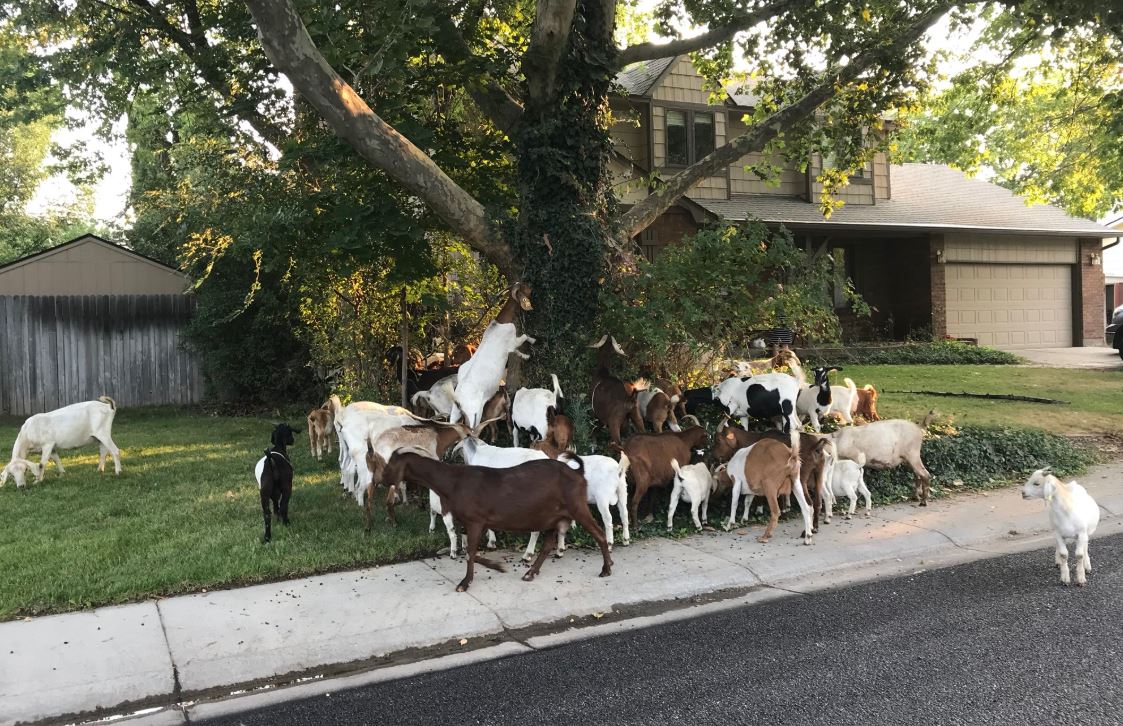 #Breaking – About 100 goats are on the loose right now in a #Boise neighborhood. They are going house to house eating everything in sight. Nobody has a clue where they came from…updates to follow pic.twitter.com/K0ghUwQEfk