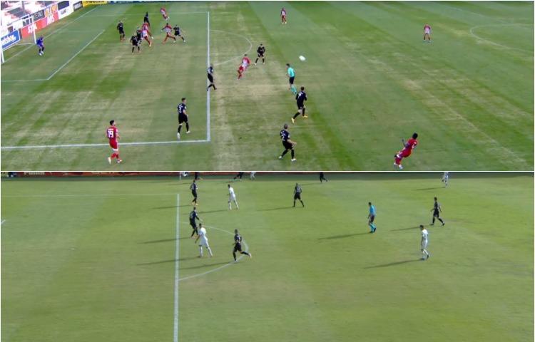 Η εικόνα «μιλάει» από μόνη της. Δύο παιχνίδια, μέσα σε διάστημα τριών εβδομάδων, τεράστια η διαφορά του αγωνιστικού χώρου στο «Θεόδωρος Βαρδινογιάννης»