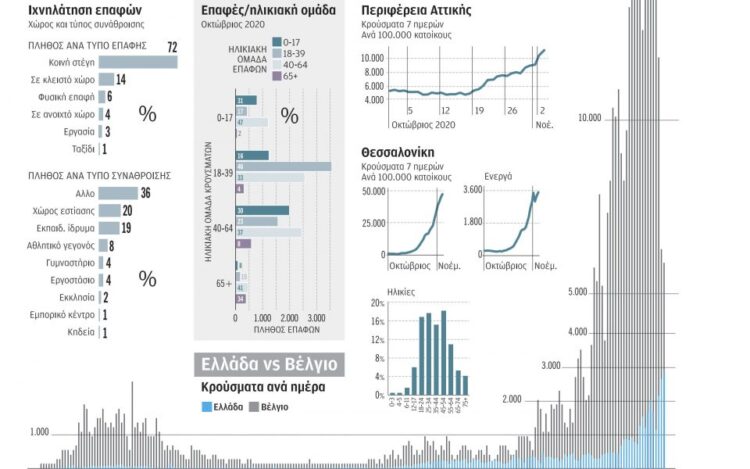 Τα διαγράμματα που παρουσιάστηκαν στον πρωθυπουργό Κυριάκο Μητσοτάκη για τον κίνδυνο «έκρηξης» των κρουσμάτων κορωνοϊού και τον οδήγησαν στην απόφαση για την επιβολή καθολικού lockdown έως τις 30 Νοεμβρίου φέρνει στο φως της δημοσιότητας η Καθημερινή.