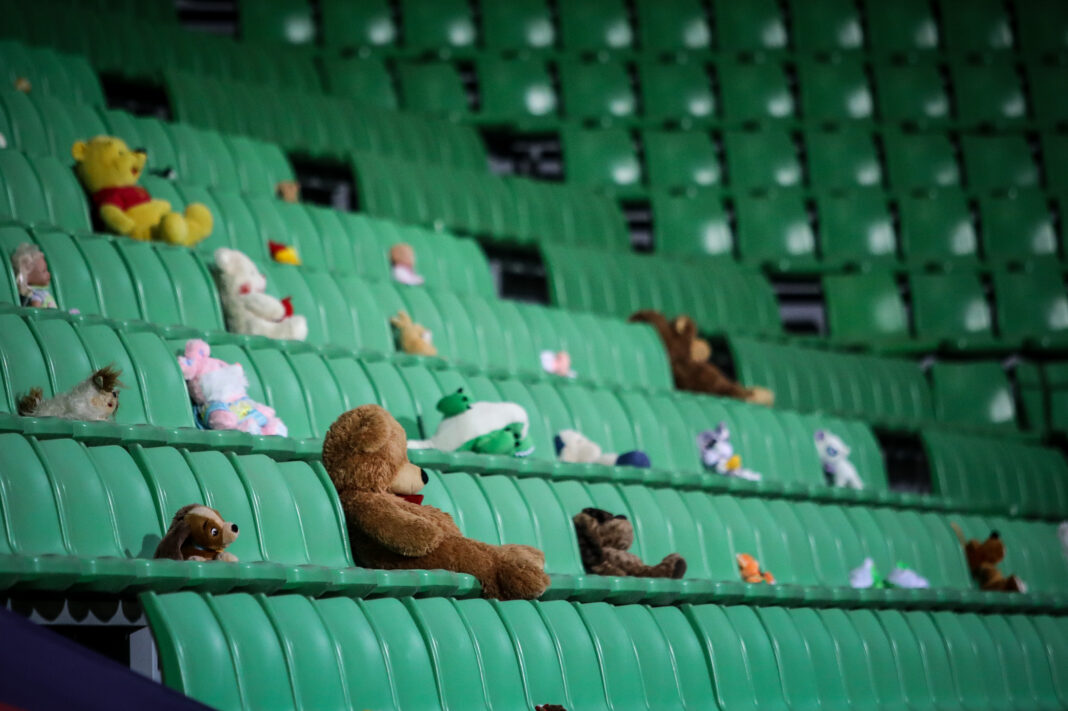 Το γήπεδο της Ζίμπρου στο Κισινάου έχει άδειες εξέδρες από οπαδούς λόγω των μέτρων του κορωνοϊού, αλλά έχει γεμάτες από λούτρινα αρκουδάκια.