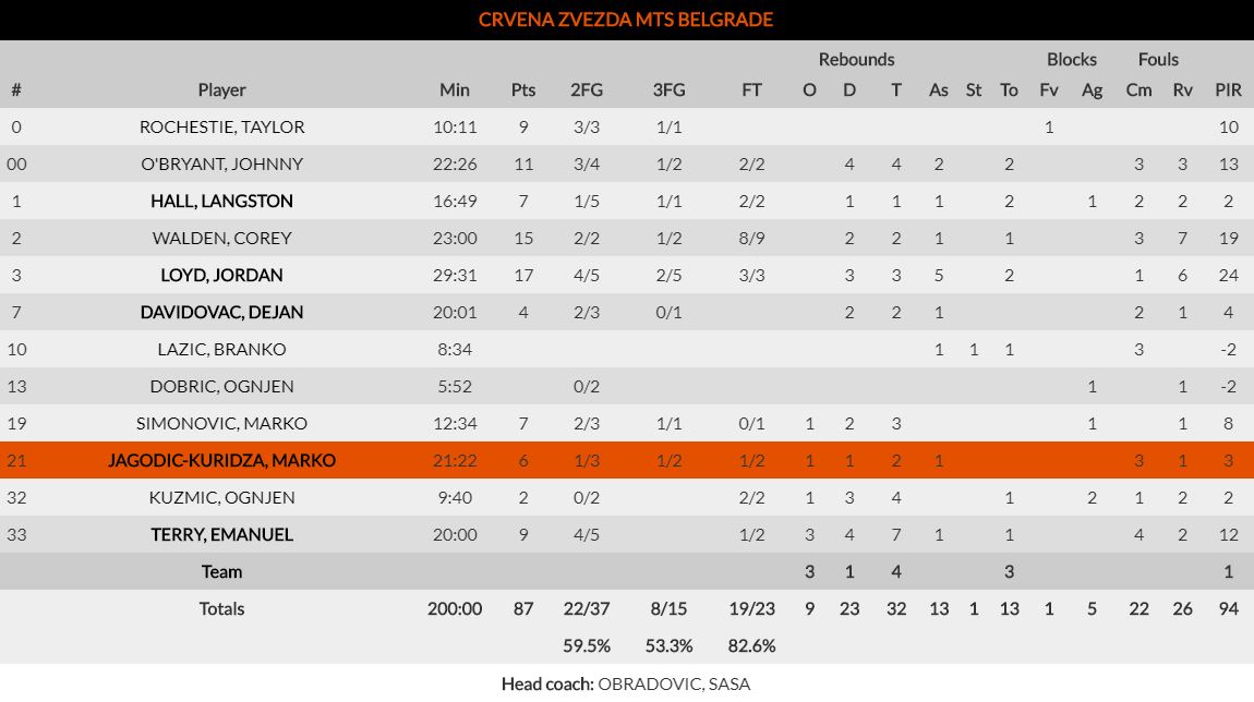 Η παραγωγικότητα της δεύτερη περιόδου, όταν φόρτωσε το αντίπαλο καλάθι με 30 πόντους και ξέφυγε με +4 στο ημίχρονο (48-44), οι κομβικές άμυνες του τέταρτου δεκαλέπτου και η απόλυτη κυριαρχία στα ριμπάουντ (32 έναντι 22), οδήγησαν τον Ερυθρό Αστέρα στην επιτυχία.
