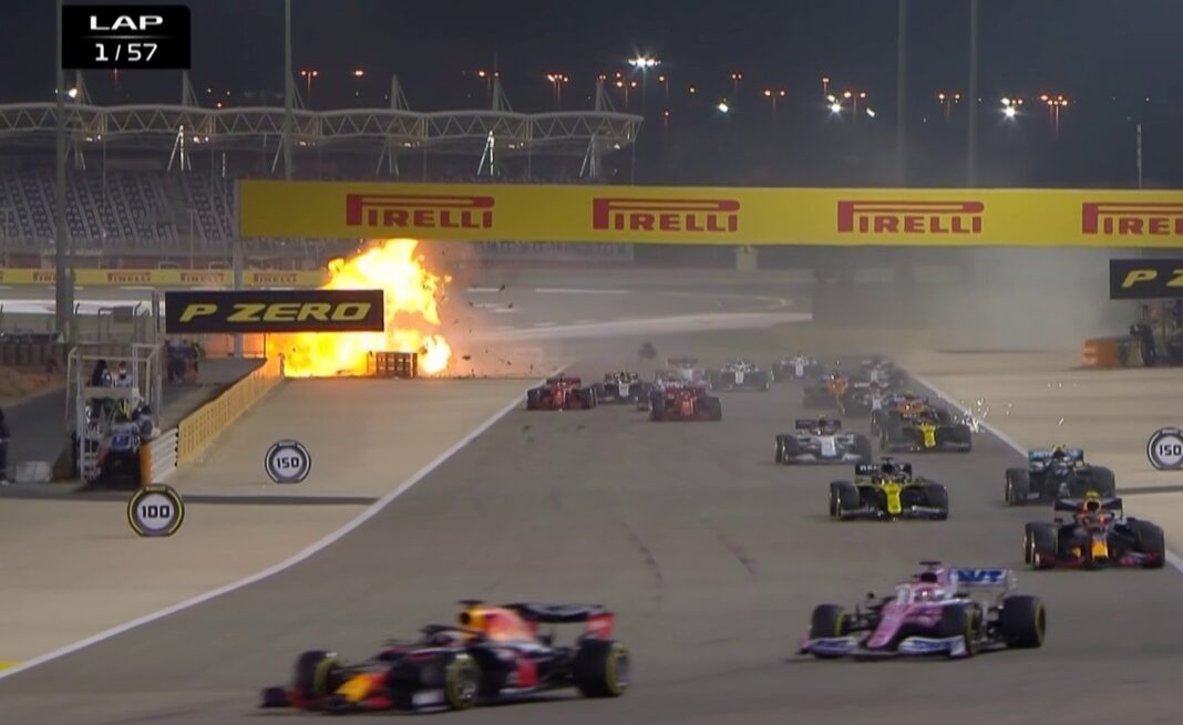 Αδιανόητο ατύχημα στη F1 λίγα λεπτά μετά την εκκίνηση του GP στο Μπαχρέιν. Ο Ρομέν Γκροζάν έχασε τον έλεγχο μετά από σύγκρουση, βγήκε εκτός διαδρομής και η Haas εξερράγη.