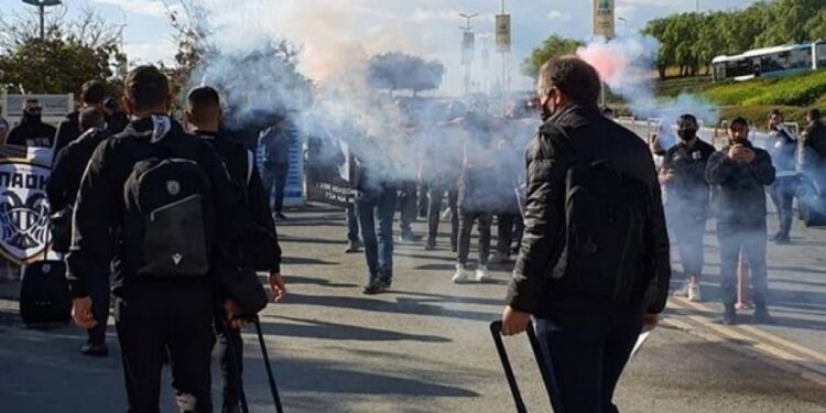 Πενήντα οπαδοί του ΠΑΟΚ συγκεντρώθηκαν στο αεροδρόμιο της Λάρνακας, προκειμένου να υποδεχτούν την αποστολή του Δικεφάλου ενόψει του αγώνα με την Ομόνοια για την πέμπτη αγωνιστική του Europa League. Ωστόσο ασκήθηκε δίωξη για παραβίαση του νόμου περί συγκεντρώσεων.