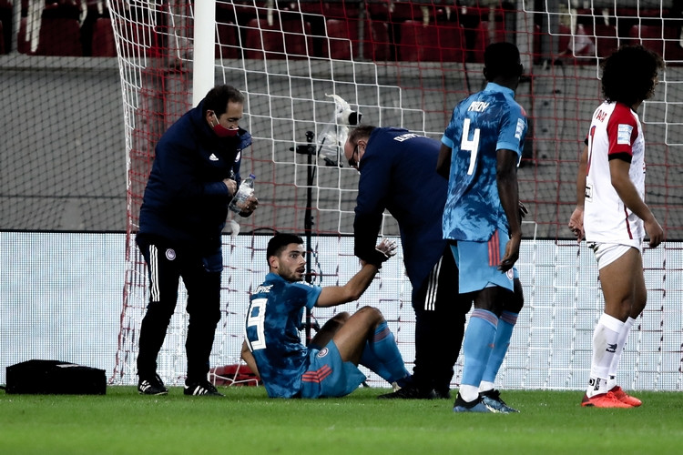 Το παιχνίδι άρχισε πολύ άσχημα για τον Ολυμπιακό, καθώς πριν από τη συμπλήρωση πέντε λεπτών ο Μαρτίνς προχώρησε σε αναγκαστική αλλαγή. Ο Ντρέγκερ ένιωσε ένα «τσίμπημα» ψηλά στον αριστερό προσαγωγό (μόλις στο 3ο λεπτό) και έδωσε, βουρκωμένος, τη θέση του στον Ραντζέλοβιτς, ο οποίος έπαιξε ως δεξιός εξτρέμ, με τον Βρουσάι να μετατοπίζεται σε ρόλο δεξιού μπακ! Ο Τυνήσιος αμυντικός έχει υποστεί πιθανότατα θλάση. Υπενθυμίζεται πως ο Ραφίνια ήταν εκτός αποστολής για λόγους ξεκούρασης.