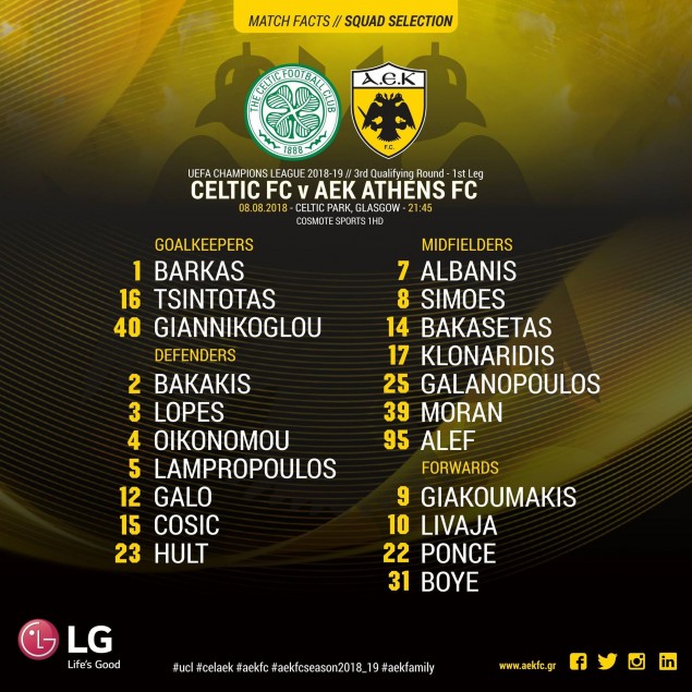 Η αποστολή της Ένωσης αποτελείται από 21 ποδοσφαιριστές, με τον τεχνικό της ομάδας να παίρνει μαζί του όλους τους διαθέσιμους παίκτες, πλην των νεαρών Γιούση και Μπότου.