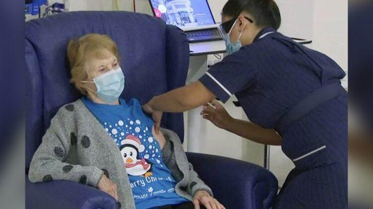 Η Μάργκαρετ Κίναν, μια 90χρονη γιαγιά από τη Βρετανία, έγινε ο πρώτος άνθρωπος στον κόσμο που έκανε το εμβόλιο της Pfizer κατά του κορωνοϊού εκτός του πλαισίου των δοκιμών, μετά την κλινική έγκρισή του.
