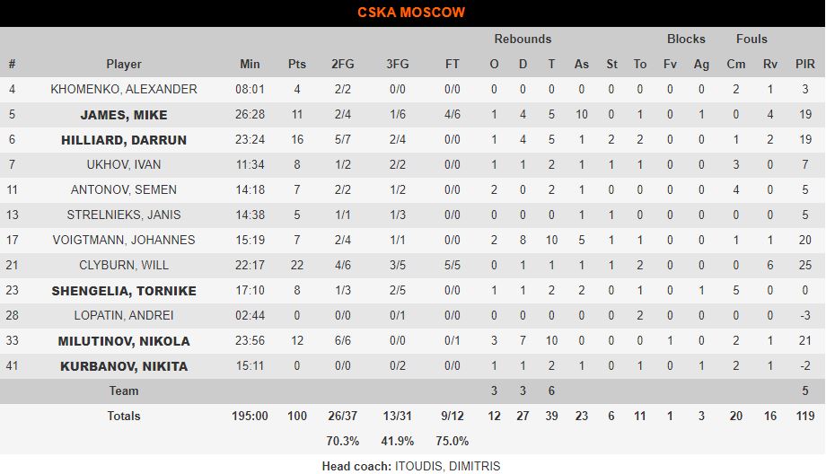 Η «αρκούδα» είχε σε φανταστική μέρα τον Κλάιμπερν που σημείωσε 22 πόντους, ενώ αψεγάδιαστος με 12 πόντους (6/6 δίποντα) και 10 ριμπάουντ ήταν ο Νίκολα Μιλουτίνοφ! Με double double ολοκλήρωσε το ματς και ο Μάικ Τζέιμς που είχε 11 πόντους και 10 ασίστ. Σπουδαίο ματς και από τον Χίλιαρντ με 16 πόντους!