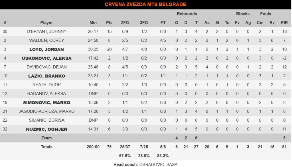 Οι γηπεδούχοι είχαν σε καταπληκτική ημέρα τον Ο’ Μπράιαντ που βγήκε μπροστά και έκανε τη διαφορά με 15 πόντους και τέσσερα ριμπάουντ. Εξαιρετικός και ο Λόιντ με 20 πόντους και έξι ασίστ.
