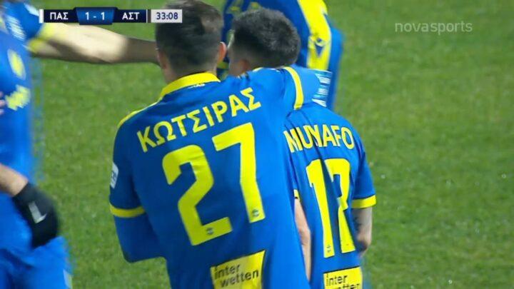 Ο Ριέρα που είχε δοκάρι νωρίς στο ματς για τον Αστέρα, έβγαλε μαγική κάθετη πάσα στο 34′ για τον Μουνάφο και εκείνος πρόλαβε τον Χουτεσιώτη και ισοφάρισε σε 1-1 για τους Αρκάδες.